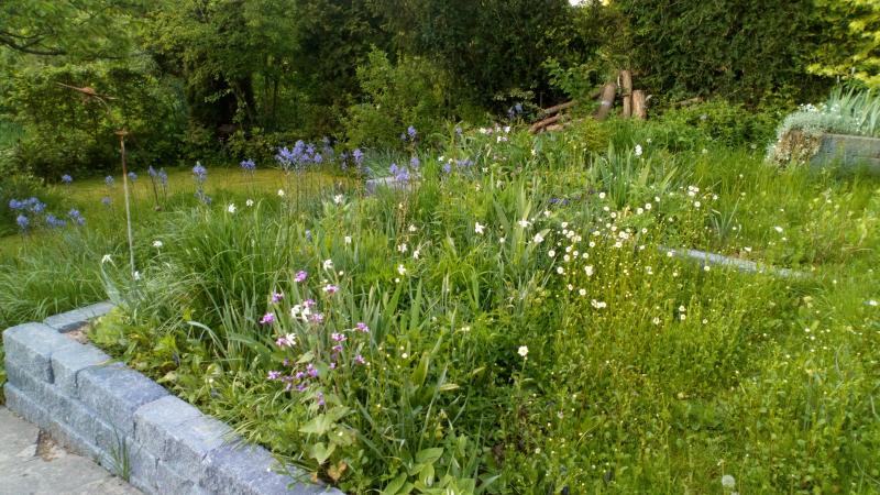 Das in der Sonne aufglühende Blutgras ist wunderschön, solche Momente sind doch DIE Bestätigung, dass das Gärtnern einen Sinn hat. :D Und ja, die üppig grünen Beete im Mai stotzen nur so vor Leben, das wird in keinem anderen Monat so deutlich. Hoffentlich halten die Spieße die Katze vom Gras fern; hier hat sich irgendein Tier an meiner schönsten Akelei gütlich getan, und fast alle Blüten liegen auf dem Boden. :'(