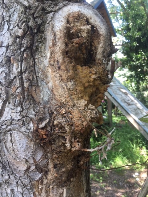 Da ist eine frühere Schnittmaßnahme nicht richtig durchgeführt worden und an der Stelle ein Pilz ins Holz eingedrungen.