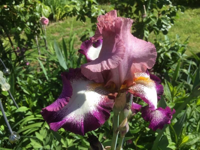 Hier ist heute die erste hohe Iris pallida aufgegangen, Iris pallida var. dalmatica "Wichmann" steht auf dem Etikett.