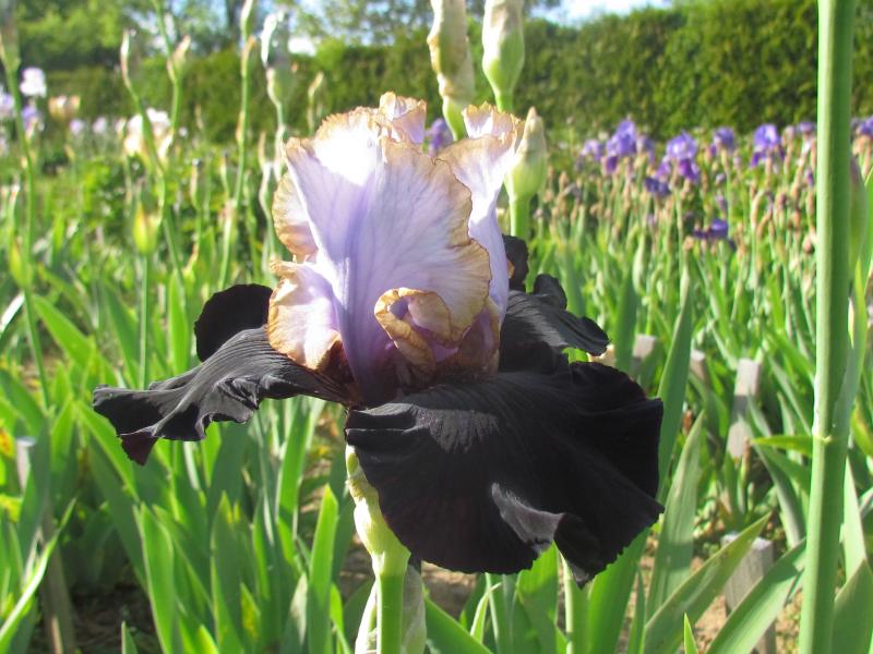 Hier ist heute die erste hohe Iris pallida aufgegangen, Iris pallida var. dalmatica "Wichmann" steht auf dem Etikett.