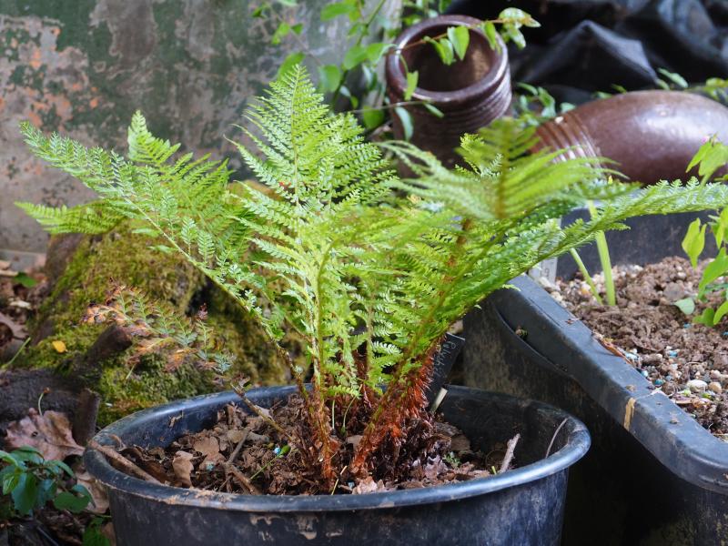 und ein paar Sorten Farne, alles Polystium, Schildfarne.