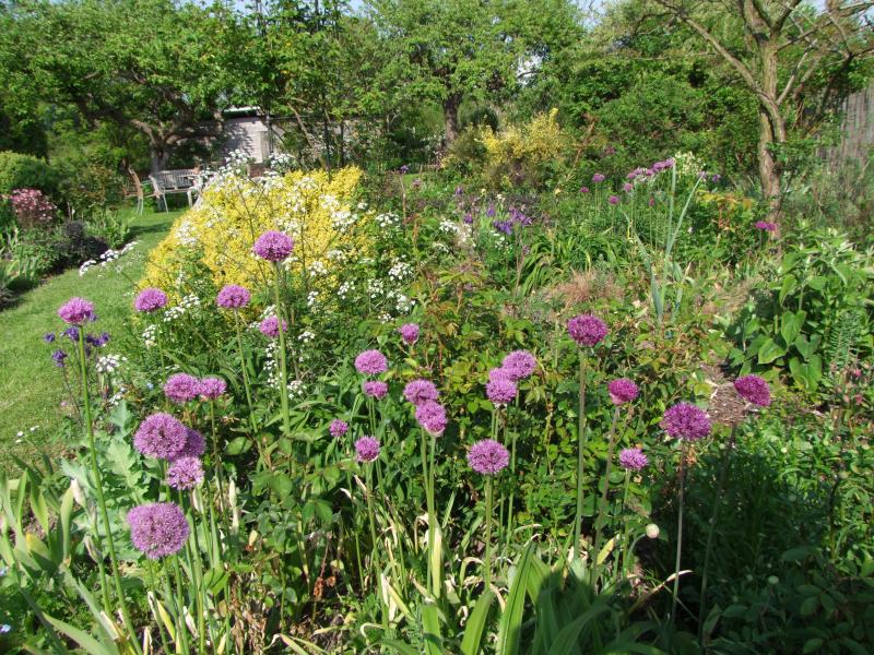 Ein bisschen dschungelartig das Beet rechts.Aber das gibt sich,wenns blüht.