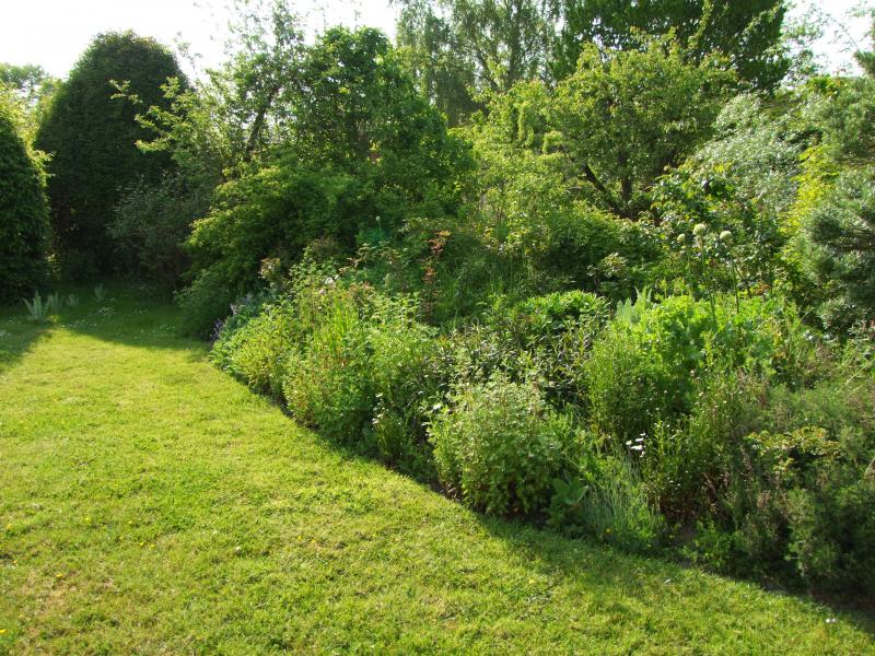 Ein bisschen dschungelartig das Beet rechts.Aber das gibt sich,wenns blüht.