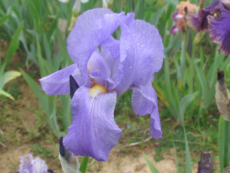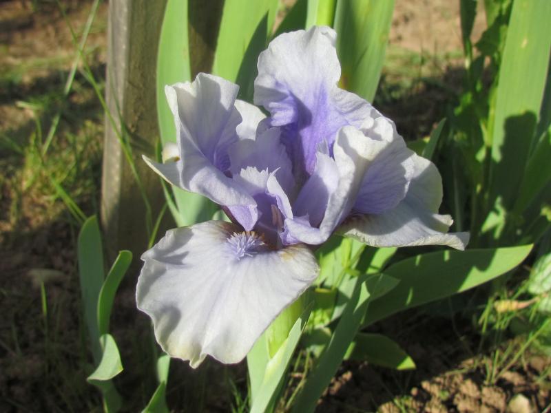 Ein Selbstsämling welcher von einer Iris pallida abstammen muss, hat die bekannten silbrigen Hüllblätter und den schlanken Wuchs, ist aber kürzer und deutlich rosa. Stört dort wo er sitzt vorerst nicht, vielleicht findet sich bei den Historischen mal ein Platz.