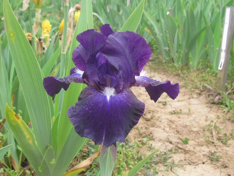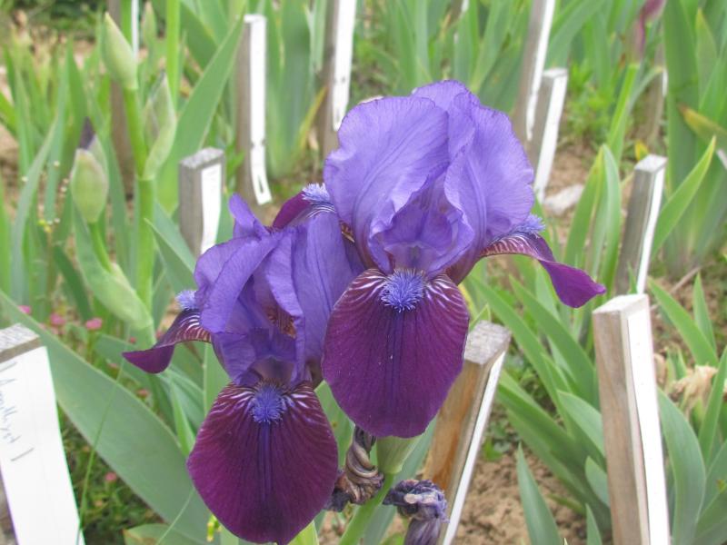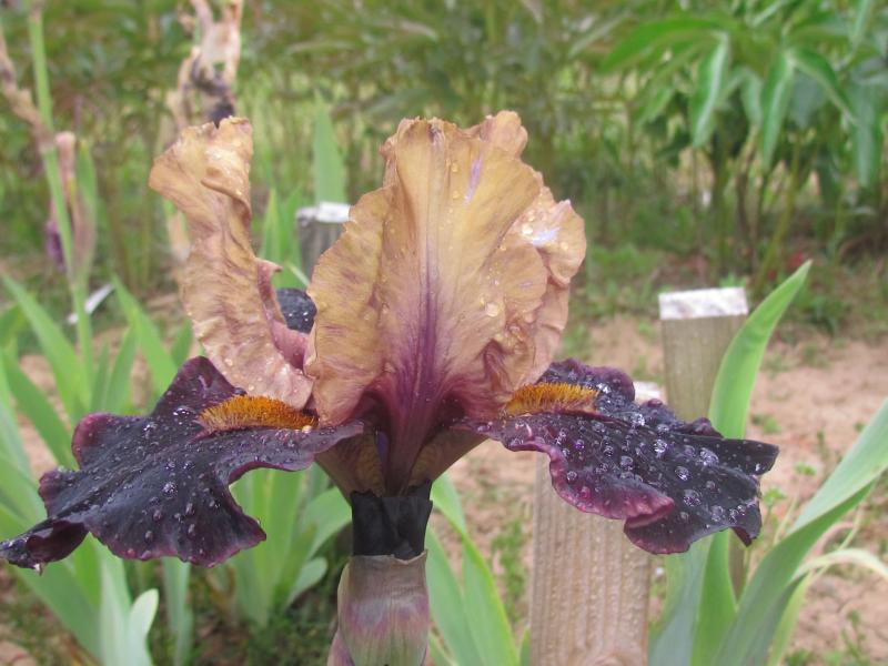 IB `Mariposa Wizard´ (Richard Tasco 2003) war eine von den Sorten, deren gerade Farbe zeigender Stängel noch unter einen Eimer gepasst hatte, als es Frost zu geben schien. Der Schutz war hier unnötig und sie war beleidigt drüber, das merkt man immer noch.