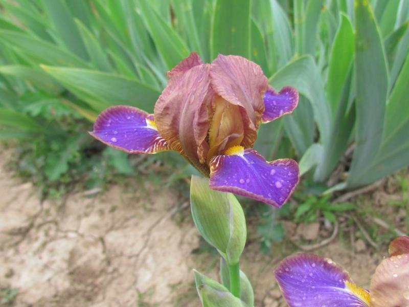 Ein Selbstsämling welcher von einer Iris pallida abstammen muss, hat die bekannten silbrigen Hüllblätter und den schlanken Wuchs, ist aber kürzer und deutlich rosa. Stört dort wo er sitzt vorerst nicht, vielleicht findet sich bei den Historischen mal ein Platz.