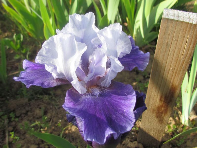 IB `Mariposa Wizard´ (Richard Tasco 2003) war eine von den Sorten, deren gerade Farbe zeigender Stängel noch unter einen Eimer gepasst hatte, als es Frost zu geben schien. Der Schutz war hier unnötig und sie war beleidigt drüber, das merkt man immer noch.