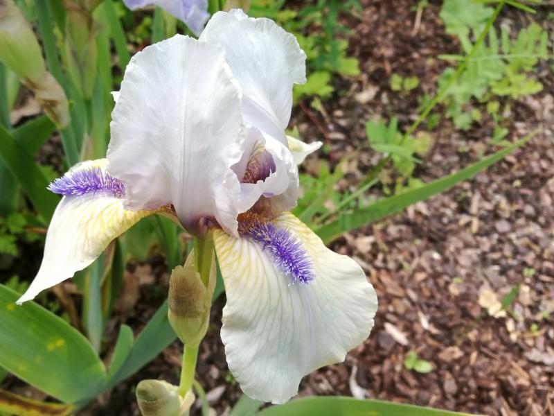 und am Rande von diesem Pulk ein UFO. Das muss als kleines Rhizömchen mitgekommen sein und wäre mir fast nicht aufgefallen. Weiß einer was das sein kann? Sonst würde ich sie gerne Blaubart nennen.
