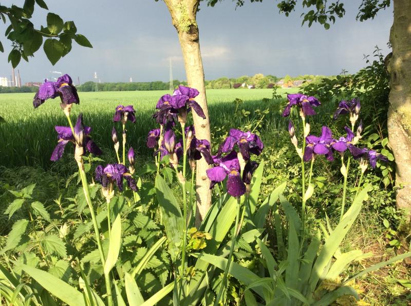 Unsere lila Iris vor dem gestern aufziehenden Gewitter.