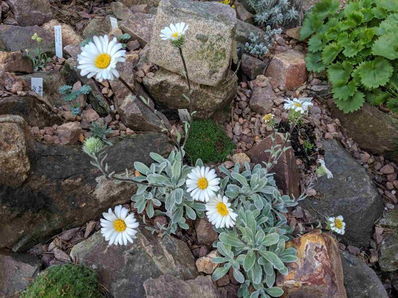 Diese Townsendia gibt mir derzeit einige Rätsel auf. Townsendia scabigera...zumindest habe ich sie als solche bekommen. Das Laub ist geringfügig breiter wie bei T. hookeri, aber schmaler als bei meinen T. spatulata. Die Basis der Blüte ist außergewöhnlich dick.
