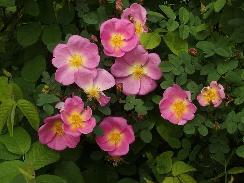 Bei mir blühen nun die Spinosissima-Hybriden, u.a. ´Haspina Violett´: