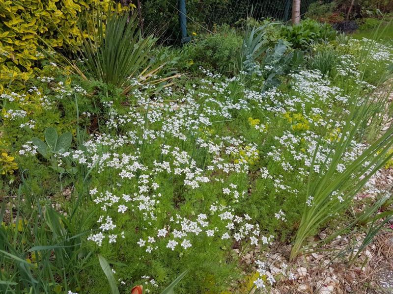 Als Einjährige Orlaya grandiflora. Beginnt jetzt zu blühen und auch die Samenstände sind nett. "Blackboxt" sich durch den Garten ;)