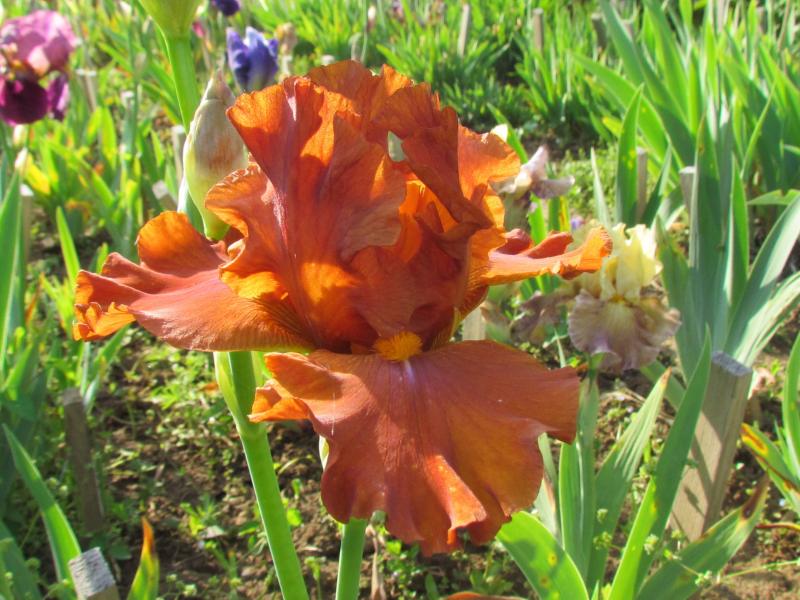 Ich habe in meinen Notizen nachgeschaut. Tatsächlich Iris aphylla. Ich hatte sie 2010 gekauft und in dieses Beet gepflanzt. 7 Jahre hat die Pflanze gebraucht, um sich hier durchzusetzen und zu blühen. Ich hatte sie bereits abgeschrieben und vergessen. Aber jetzt scheint sie es geschafft zu haben. Dieses Jahr gab es schon mehr Blütenstengel als letztes Jahr.