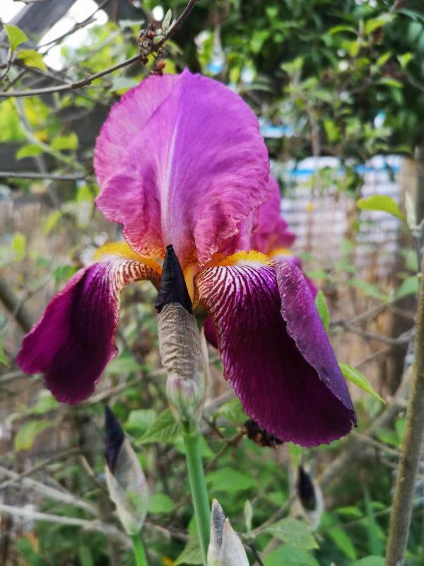 die muss mit meiner verwandt sein. Wunderbare Farben, changierende seidige Gelb-Rosa-Töne der standards, samtige Textur der falls. Aber eine Form zum weglaufen. Einklappende falls kann ich nicht leiden. Schlussendlich habe ich sie kompostiert.