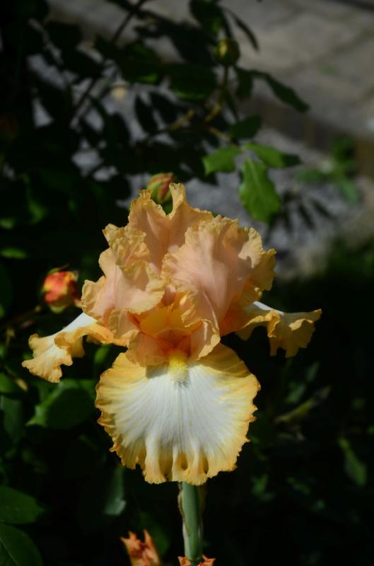 Hier öffnete gestern ein eigener Sämling die erste Blüte. Im Spätsommer letzten Jahres hatte ich sämtliche Sämglingstöpfe mit mehrjährigem Austrieb (aus Platzmangel) ins Straßenbeet gepflanzt, um mal das Topfquartier rigeros zu entrümpeln. Leider ist es bisher die einzige hohe Sämlings-Bartiris. Mit I. sibirica hatte ich schon schöne Erfolge, allerdings haben sie immer mindestens 4-5 Jahre bis zur ersten Blüte gebraucht.