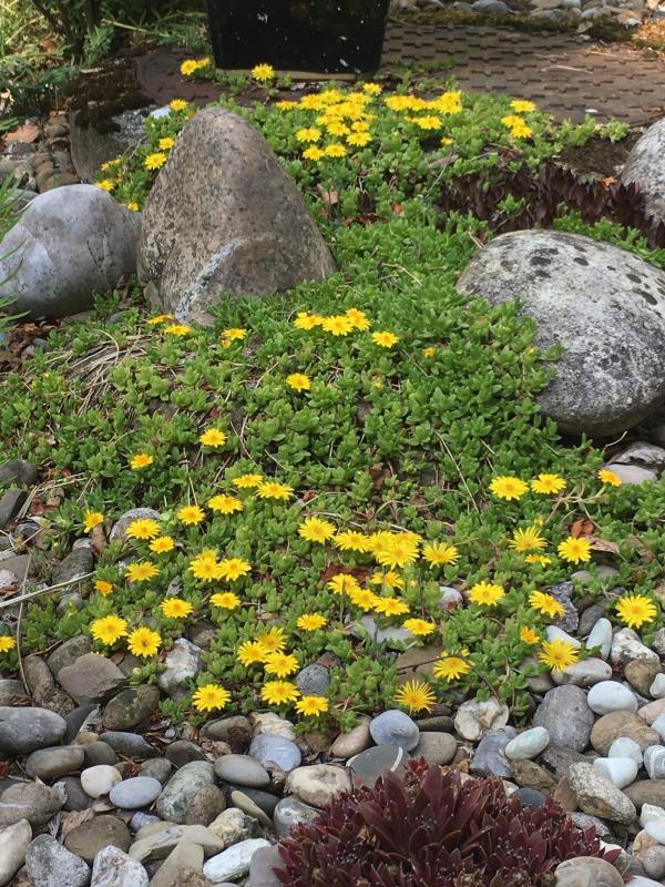 In meiner Trockenmauer auch. Unter den Namen Delosperma Orange Topaz und Delosperma Perfect Orange habe ich übrigens von zwei Versandgärtnereien Pflanzen gekauft, die für mich als Hobbygartler von Fire Spinner nicht zu unterscheiden sind.
