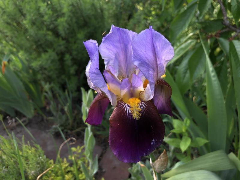 die Iris ist älter als 100 Jahre. Es gibt solche Iris schon sehr lange, sie tauchen an Burgen, in Weinbergen in historischen Gärten auf, wurden in Dörfern von Garten zu Garten weiter gereicht und wurden von Redouté gemalt. Manche sagen dazu Iris sambucina, manche halten sie für eine Iris neglecta. Ersterer Name ist als Artname akzeptiert, letztere wurde von Redouté verwendet, ist heute als Gruppenname gebräuchlich und wird groß geschrieben. Die Neglecta Iris haben einen hellblauen Dom und kräftig blauviolette Hängeblätter.