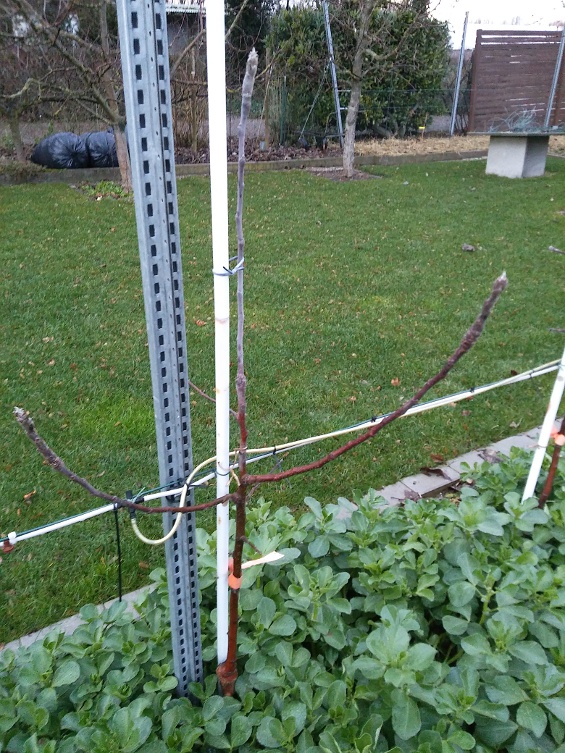 Eigentlich wäre das einen eigenen Faden wert - "Wie baue ich mir ein Obstspalier?" - kann man ja auch für Himbeeren etc. hernehmen... .