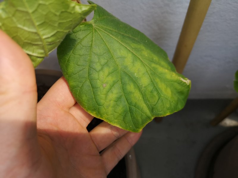 Wie im Titel beschrieben, fangen bei zwei zugekauften, veredelten Gurken plötzlich die Blätter von nur nten her an schlaff und gelb zu werden. Auf manchen Blätter sieht man auch deutlich gelbe Flecken/Aderungen.
