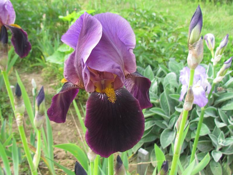 `After Dark´ (Schreiner 1963), macht so viele Stiele wie keine andere Sorte hier, manche davon scheinen keinen Platz mehr zu haben und fallen deswegen um. Zweischneidig!
