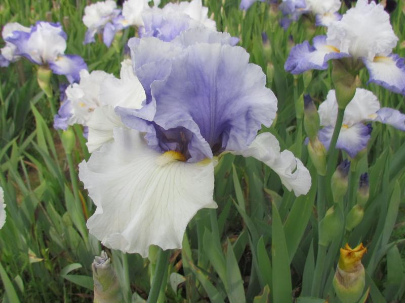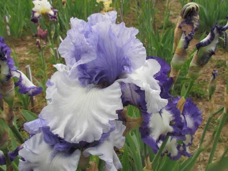 Ich muss euch noch einmal mit einem Foto von 'Help from your Friend'belästigen. Für mich ein eindringliches Beispiel für eine schnellvermarktete ,in allen Bereichen überzüchtete Iris.Überrüscht bei flatterigen,dünnwandigen Blütenblättern ,immer fleckig und unproportioniert.Bei keinem Wetter gut aussehend,Fernwirkung farbenmatschig.Bei Regen verfangen sich die Tropfen in den Rüschenecken und verlaufen zu unschönen Flecken und sie fällt gleich in sich zusammen.Die Knospen sind nach Nässe schon gleich braun.