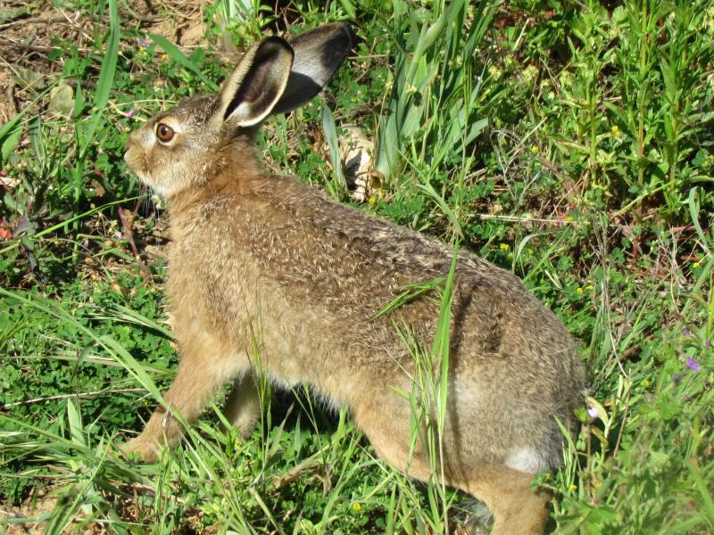 Der Hase ist bestimmt dauerstoned von dem Farben-und Duftrausch in dem Irisfeld.Wahrscheinlich sieht er dich nicht. ;D