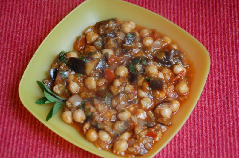 Heute gab es Maghmour :D (Auberginen, Kichererbsen, Tomaten, Tomatenmark, Zwiebeln, Knobi, Öl, Minze, S&P).