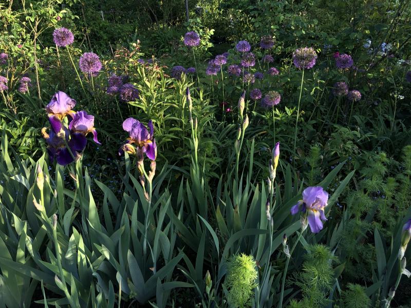 meine pflanzen aus der law-group habe ich dieses jahr noch gar nicht von nahem fotografiert, hier eine situation mit entfernung (links das lila zeugs)
