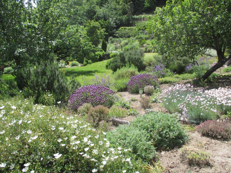 Hast Du dort auch Plantago sempervirens? Und das weiß blühende ist ein Sonnenröschen?