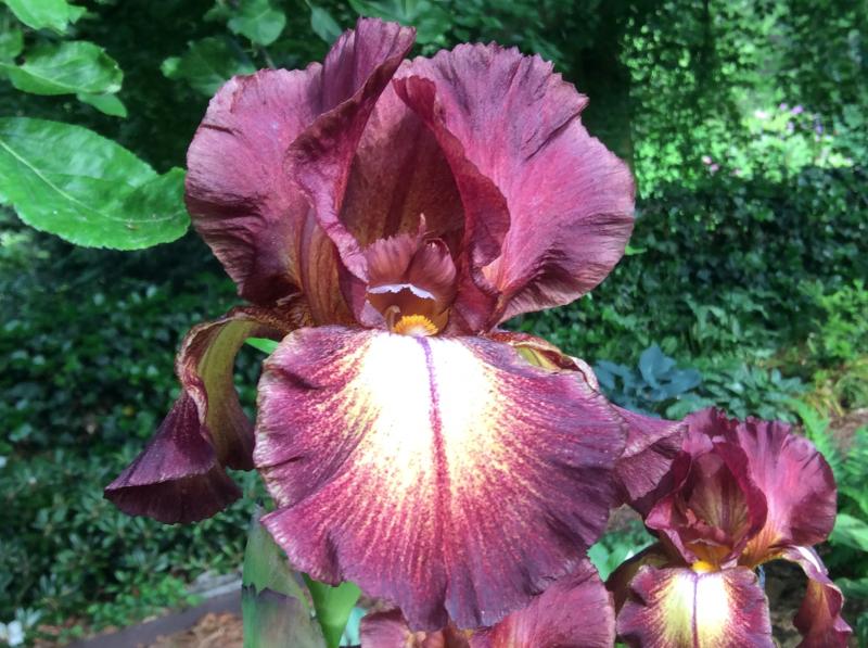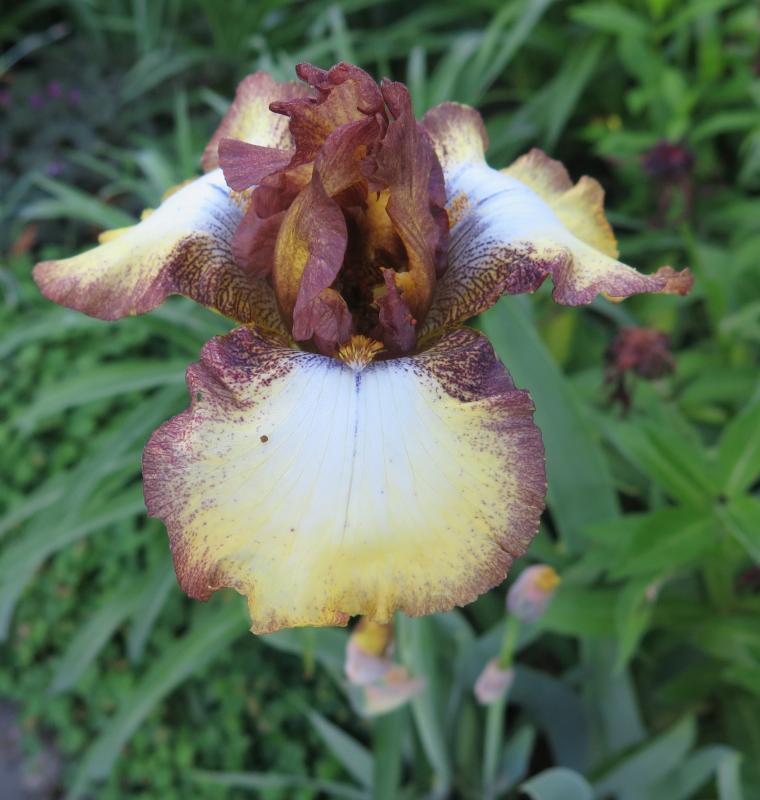 Und wieder ein Rätsel, diese Iris ist mal bei irgendeinem Pflanzentausch in meinem Garten gelandet, ca. 70cm hoch wenn der Blütenstengel keinen Knick machen würde, kleinbütig.