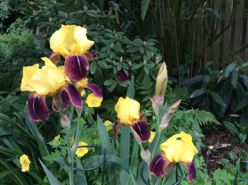 die unbekannte mit ihren farblich passenden Begleitern Meconopsis und Rhododendron. Ich hoffe, letzterer blüht noch etwas mehr auf, ehe es mit der Iris vorbei ist.