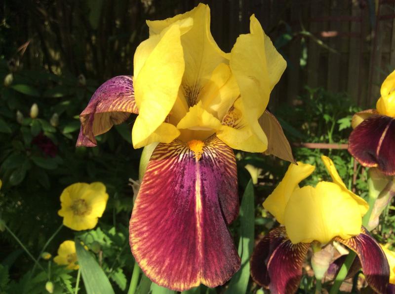 Die Bartiris im sonnigen Vorgarten sind verblüht, jetzt blühen die Bartiris hinterm Haus im Halbschatten unter dem Gingkobaum.