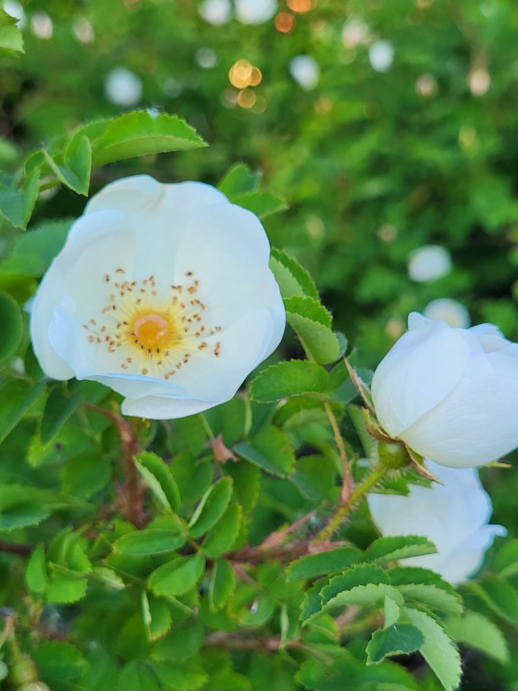 Meine 15-jährige Rosa roxburghii steht jetzt in voller Blüte. Sie ist 4 m hoch und zur Blütezeit eine Augenweide.