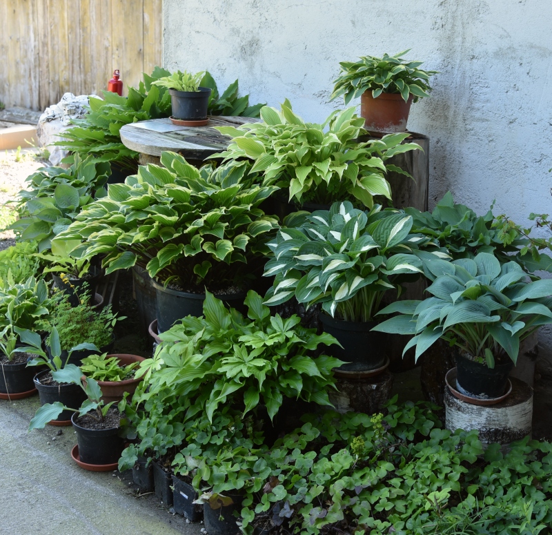 Wegen euch ist schon letzte Woche ein Paket neue Hosta zur mir gekommen... und den alten gefällts im neuen Heim auch ziemlich gut. Mir war 'Torchlight' nie als so hübsche Topfhosta bewusst!
