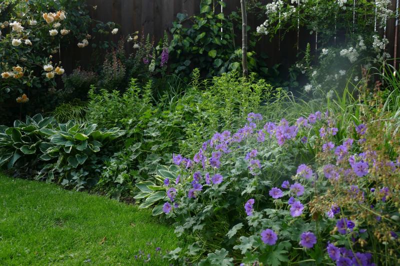 mir gefällt der Garten auch. Sieht man selten, so etwas durchgestaltetes. Am meisten fällt mir der Stamm im Hintergrund zwischen Nassella tenuissima auf. Korrespondiert mit den anderen beiden Gehölzen und ist ein starker Kontrast zu der vollen hellgrünen Belaubung auf der rechten Seite. Räume gliedern sich in Positiv/Negativ Formen/Leere. Den Verzicht auf Pastellfarben finde ich angenehm. Die roten Blüten des Geums sehen aus als ob sie aus dem Gras herausschössen, wie bei einem Feuerwerk. Eine sehr tolle Kombination. :D Nur das rotlaubige Heuchera passt in meinen Augen nicht. ;)