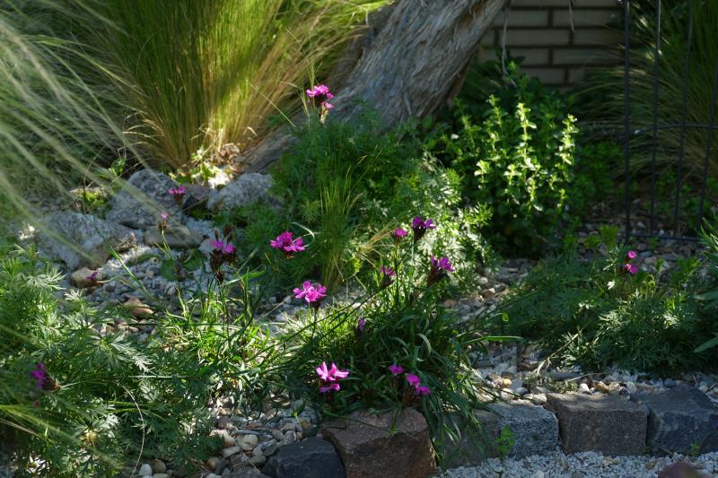 Um die Füße von solchen ausgesuchten Gehölzen habe ich gerne kleine trockenverträgliche Carex. Mein Vitex agnus-castus hat einen schönen Bestand von Carex humilis 'Hexe' und um Eleagnus x ebbingei 'Compactum' wächst Carex montana. Es gibt auch die schöne Sorte Carex montana 'Raureif'. Experimente mit Carex alba scheinen auch vielversprechend.