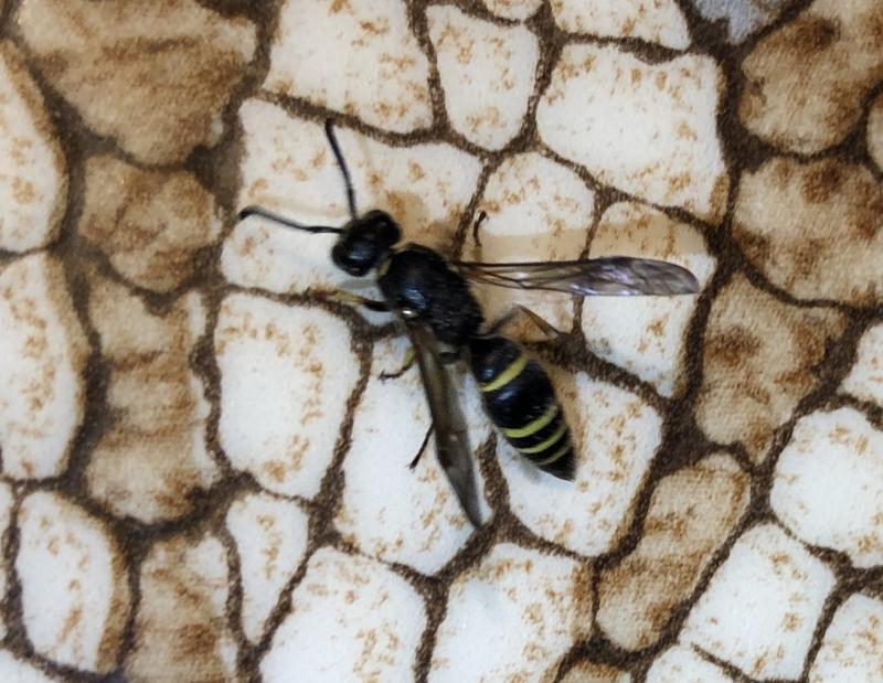 gestern nacht rettete ich noch vorm zubettgehen ein verflogenes tier aus der waldgartenküche und habe nicht an ein foto gedacht: ich erinnere mich an ein auffallend hübsches prägnant gezeichnetes tier, ich meine, ca. 1cm lang, schlank, schwarz und eher glatt mit recht langen fühlern und einem dickeren goldgelben ring am leib – gibt es sowas bzw. genügt diese erinnerung für den versuch einer zuordnung, wildbiene oder erzwespe? :-\