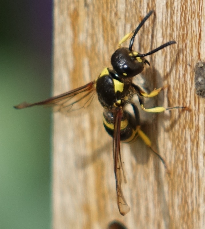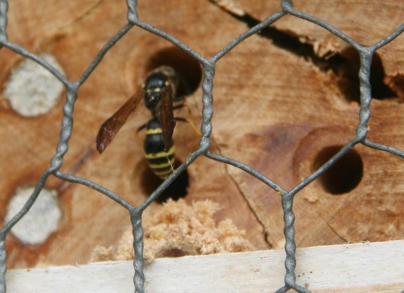 elis, das tier an der nisthilfe ist dann wohl auch so eine solitäre faltenwespe wie meine – ich denke aber, eine andere art, welche auch immer...