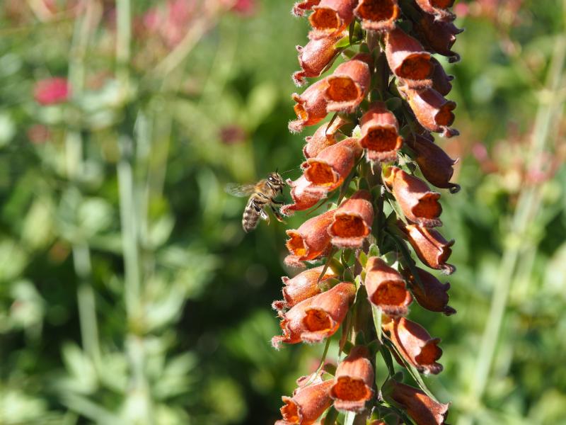 meine Jagd nach Schnappschüssen von den Bienen, die meine Digitalis Parviflora - D.ferruginea x D.parviflora - befliegen.