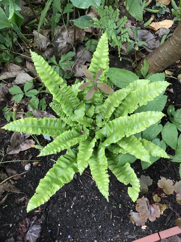 Er steht etwas zu nah an Polystichum setiferum 'Madame Patti' aber ehrlichgesagt, finde ich die beiden auch sehr schön zusammen und sie sind im gleichen Alter.