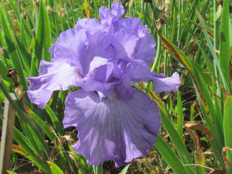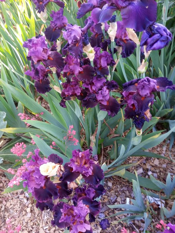 Ich bin gerade dabei Iris, die geblüht haben, aus Pflanzungen zu nehmen und zu topfen. Ich hatte ja eine Schubkarre voller Rhizome modernerer Sorten aus einer Pflanzung raus und unsortiert in eine gut vorbereitete Fläche mit gutem Substrat rein. Jetzt sortiert sich das Zeug nach und nach. Dabei ist ein Etikett von Klose aufgetaucht. Iris Ib Ruby Chimes.