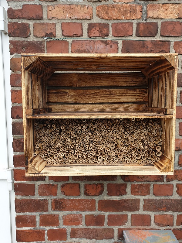 machst du noch draht davor? an nachbars insektennisthilfe hackte letztens lustvoll ein specht, dass die holzstückchen flogen! :o ;D