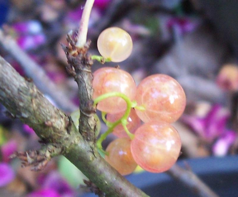 Im Frühjahr hatte ich doch meinen Johannisbeersämling gezeigt, jetzt ist die einzige Traube die daran hing reif und was soll ich sagen, sie ist rosa :D