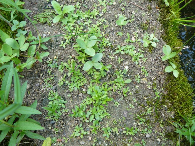 schon ab dem 2. Jahr keimten auf dem noch "nackten" Kunstrasen neben Moosen auch Selbstaussaaten von div. Teichpflanzen und "eingewandertes" u.a. Weiden :o, Ufer-Wolfstrapp, Blutauge, schwertblättrige Binse, Sumpf-Helmkraut, Zweizahn, Sumpf-Labkraut, Nadelminze, Wasserschwertlilien, aufrechter Merk u.a ;D