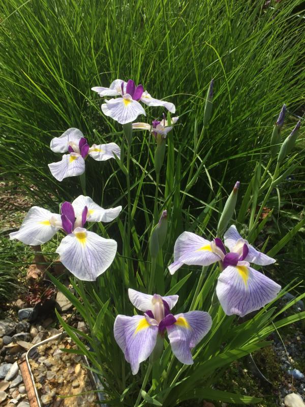 Ein paar späte I. sibirica-Sämlinge machen mir gerade Freude. Die zart lavendelfarbige Blüte mit gräulicher Zeichnung ähnelt von den Farben her 'Mrs. Rowe' (die sehr früh blüht). Dieser Sämling ist aber deutlich höher, was ich bevorzuge. Daneben noch ein knospiger grüngelber Sämling, darauf bin ich schon sehr gespannt.