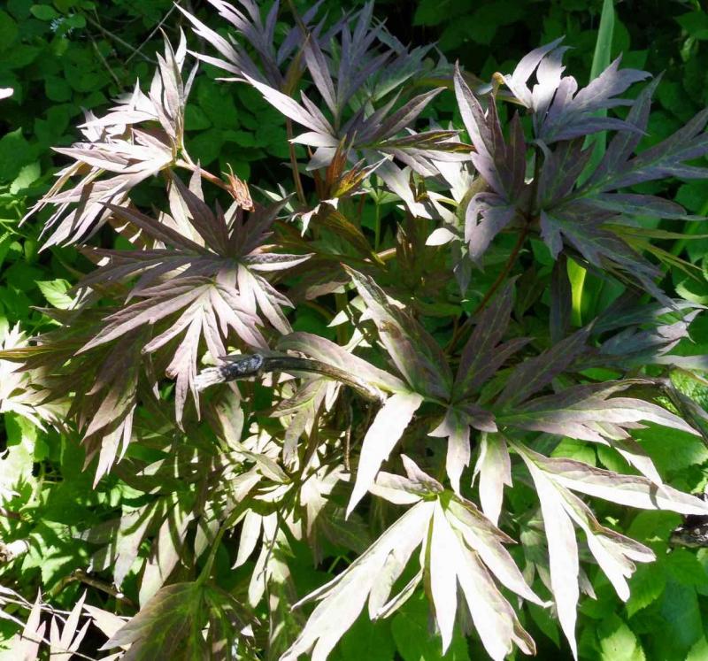 Noch spektakulärer finde ich das geschlitzte Laub mit braunem Schimmer: