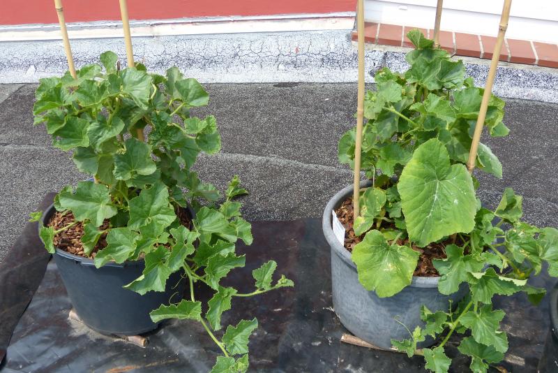 Ich habe heuer erstmals einen Versuch mit Melonen laufen. :) Die Aussaat im Freiland im April hat wegen dem kalten Mai leider nicht geklappt, deswegen habe ich Anfang Juni zwei Jungpflanzen aus dem Baumarkt gepflanzt. Die Wassermelonen 'Ingrid' und 'Sugarbaby'.