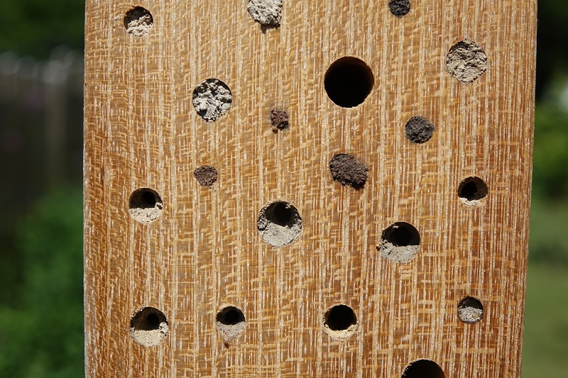 Ich habe gleich gestern die Rückwand der neuen Bienenhütte mit frischen Ruten bestückt. Ich hoffe die Ausrichtung direkt nach Norden hält die Bienen nicht davon ab auch da einzuziehen. Sandbienchen hast Du eine Vorstellung davon, wann ich die vorjährig genutzten Ruten austauschen kann oder ob überhaupt. Mir scheint es als gruben die Bienenmädels jedes Jahr neue Niströhren in frisches Mark aber vielleicht werden diie Ruten auch mehrmals genutzt??