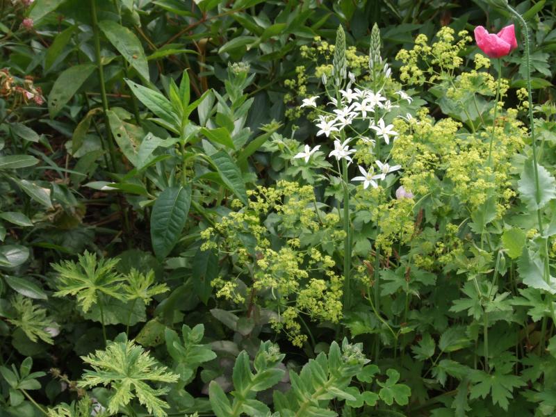 verzweigten Blütenanordnung ein Gewinn, gut kombinierbar mit weiß wie hier Aruncus ( Aruncus tendiert aber leider im Abblühen zu einem
