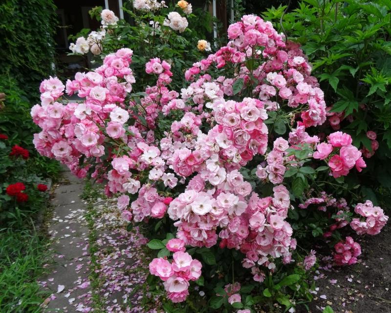 Hier haben sich nach etwas mehr Pflege die Rosen recht üppig entwickelt. Hier 'Gloria Dei', nachdem ich sie in den letzten Jahren nicht mehr so häufig gesehen habe, gefällt sie mir wieder sehr gut.